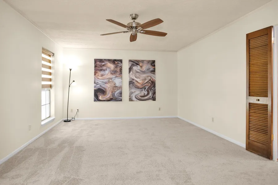 Enjoy the good life in this beautifully refreshed 4-bedroom, 2.5-bath home in a well-established neighborhood, convenient to shopping, restaurants and more. Fresh neutral paint and new flooring throughout create a clean, sophisticated feel. The thoughtful layout features a welcoming den with a gas log fireplace and wet bar—perfect for entertaining. Two flexible rooms offer versatility, ideal for a formal living or game room and a formal dining room or home office. The large primary suite includes an ensuite bath, and private balcony for peaceful retreat. Step outside to a park-like backyard with mature trees, extensive decking, and a relaxing hot tub. Detached 2-car garage and newer A/C (just 2 years old) add comfort and value. Stylish, inviting, and move-in ready!