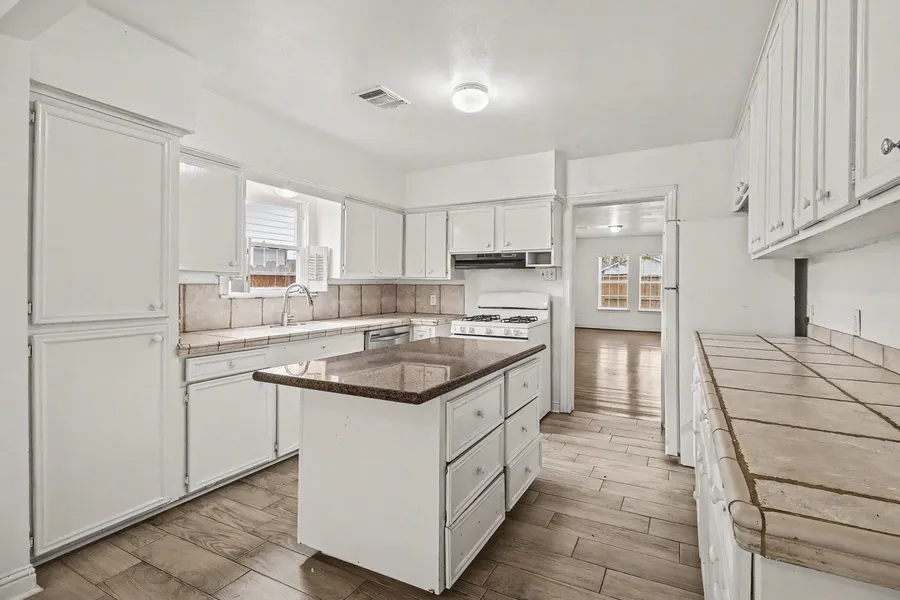 Great opportunity to buy this bright and spacious 2-bedroom, 1 bath home located close to Downtown and the Medical Center! The attractive home benefits from a large Living Room with shining wood floors and lots of windows for beautiful light. A large kitchen with tile counters has an island with a granite top and tile floor. The dining area is open to the island kitchen. There is an extra room located next to the dining area that could have many uses, possibly even an extra bedroom if needed. Both bedrooms are well-sized with wood floors, and the Hall Bath has tile floors and a shower/tub. The property is fenced with a fresh privacy fence installed around the front yard and a gated entrance. Detached 2-car garage. Central A/C and heat! Cement board siding and dual pane windows. Close to schools. Make your move today!