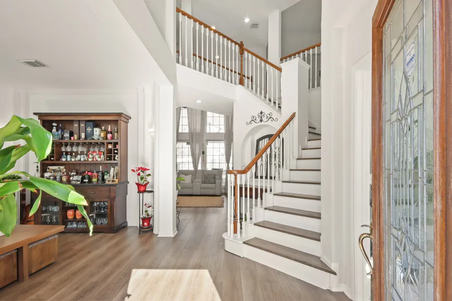 Exquisitely appointed 3,342 sq ft estate offering 4 bedrooms and 5 bathrooms, blending timeless elegance with modern comfort. This impressive two-story residence showcases soaring ceilings, refined architectural details, and expansive windows that bathe the interiors in natural light. The updated gourmet kitchen is designed to impress, featuring abundant custom cabinetry, premium stainless steel appliances, and an oversized island that flows effortlessly into the main living and dining areas, perfect for both intimate gatherings and grand entertaining. The lavish primary suite serves as a private sanctuary with a spa-inspired bath complete with dual vanities, a soaking tub, and a separate glass-enclosed shower. Upstairs, you'll find a loft area and 3 secondary bedrooms. Outdoors, a resort-style retreat awaits with a sparkling pool, spa, pool bath, and massive covered patio. Additional en...