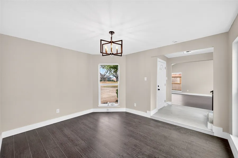 Recently updated 3-bedroom, 2-bath home offering 2,153 sq ft of thoughtfully designed living space on a 9,120 sq ft lot. Built on a slab foundation with brick veneer exterior, the home features vaulted and high ceilings, recessed lighting, ceiling fans, and expansive living areas filled with natural light. The central living room showcases an open-to-above ceiling and built-in wet bar, creating a defined entertaining space that flows seamlessly into the dining area and kitchen. The kitchen includes quartz countertops, gas range, and extensive cabinetry. The primary suite features a double quartz vanity, framed mirrors, matte black fixtures, and a glass-enclosed walk-in shower with tiled niche. Flooring throughout the main level and bedrooms is hard surface; the second-floor loft is carpeted, providing a flexible additional living area. A private interior patio anchors the center of the h...