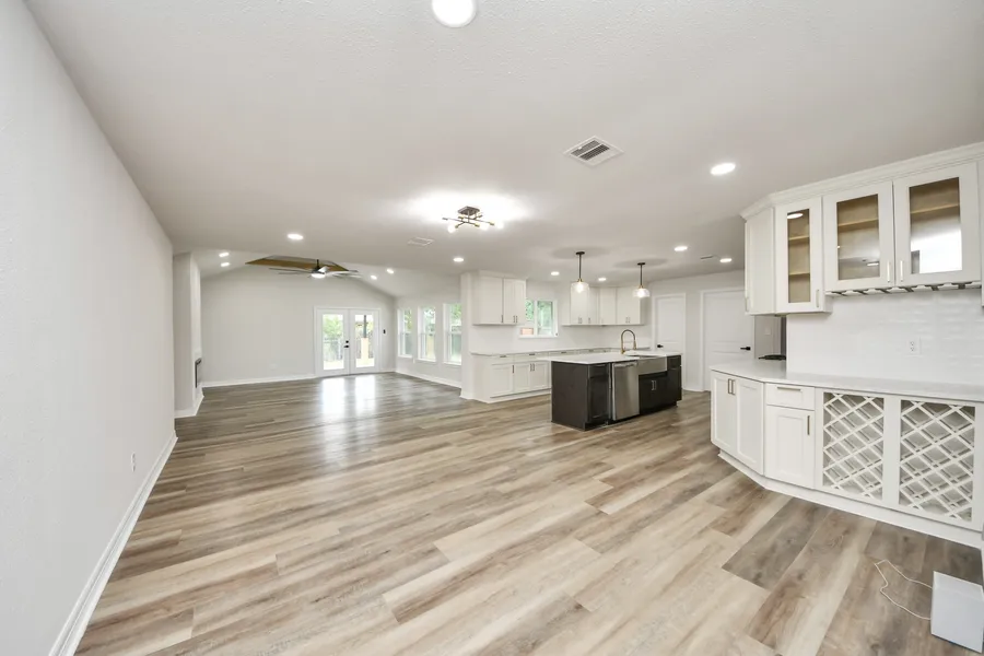 Beautifully remodeled 4-bedroom, 2.5-bath home with modern upgrades and timeless style! Enjoy an open floor plan with large windows, recessed lighting, and vaulted ceilings that create a bright, spacious feel. The living area features a sleek electric fireplace, wood-look flooring, and French doors leading to the backyard. The modern kitchen offers quartz countertops, shaker cabinets, gold hardware, stainless steel appliances, and a large island with a farmhouse sink. The primary suite includes a walk-in closet and an elegant bath with a frameless glass shower and quartz vanity. Outside, a spacious backyard with a covered patio is perfect for entertaining or relaxing. Two-car garage accessible through the driveway. Schedule your showing today!