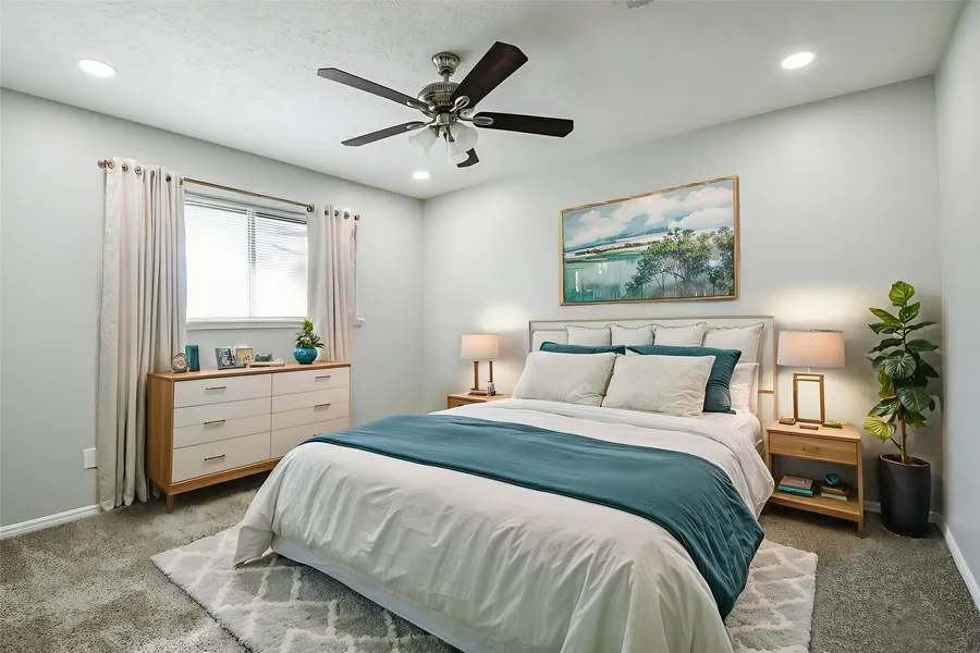 Discover an exceptional two-story home situated on a picturesque, tree-lined lot that exudes tranquility. This impressive residence features five spacious bedrooms and three full bathrooms, designed for both comfort and style. Its striking white-painted brick and dark trim command attention, presenting a fresh and desirable aesthetic. A meticulously maintained walkway leads you to the elegant front entrance, elegantly framed by attractive lanterns. The covered backyard is designed for enjoyment, featuring a stunning in-ground pool ideal for relaxation and entertaining. Recent updates: 2018 AC condenser unit and gas water heater; 2024 30-year roof and exterior paint; all interior paint just completed; new fence; new pool pump and filter; new carpet; new recessed lights, outlets, and fixtures. This home is strategically located near schools, parks, shopping, and a variety of restaurants, with convenient access to IH-45. Seize this opportunity to claim your dream home today! A must see!