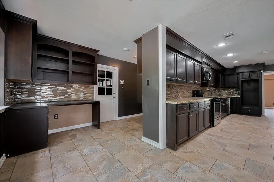 Incredible 5 BED, 2.5-bath custom two-story home on an oversized lot with NO HOA! Nestled among mature trees with a circular drive, this beautifully maintained home features high ceilings, large windows, and gorgeous hardsurface flooring. The open-concept layout includes a formal dining room, spacious living area with focal fireplace, and a well-appointed kitchen with granite counters, stainless appliances, custom cabinetry, and a wet bar with wine storage. The oversized utility room includes built-in desk space. Upper-level large game room with restored wood flooring and a custom-built-in bar. The serene primary suite offers a spa-like bath with a jetted tub, a standalone shower, dual vanities, and a massive walk-in closet. Three generously sized guest bedrooms and a full bath complete the upper level. The fully fenced backyard boasts a sparkling pool with a rock waterfall, a covered pa...