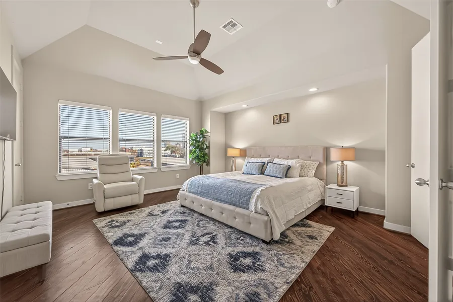 Stunning 3-story DETACHED home in a gated First Ward/Washington East enclave with Downtown skyline views from the second floor. The first floor offers a flexible bedroom with full bath and access to a fully turfed backyard, perfect for grilling and entertaining. The second floor is the heart of the home, featuring a light-filled open-concept living area with 12’ ceilings, hardwood floors, and a gourmet kitchen with granite countertops and gas range. Step onto the second-floor extended patio overlooking Downtown, ideal for hosting friends or unwinding after a long day. The third floor features a spacious primary suite with spa-style bath and walk-in closet, along with an additional guest bedroom and full bath for added privacy. Plenty of street parking for guests, easy access to I-10, walking distance to Buffalo Bayou trails, breweries, and restaurants, and minutes from Downtown. Urban li...
