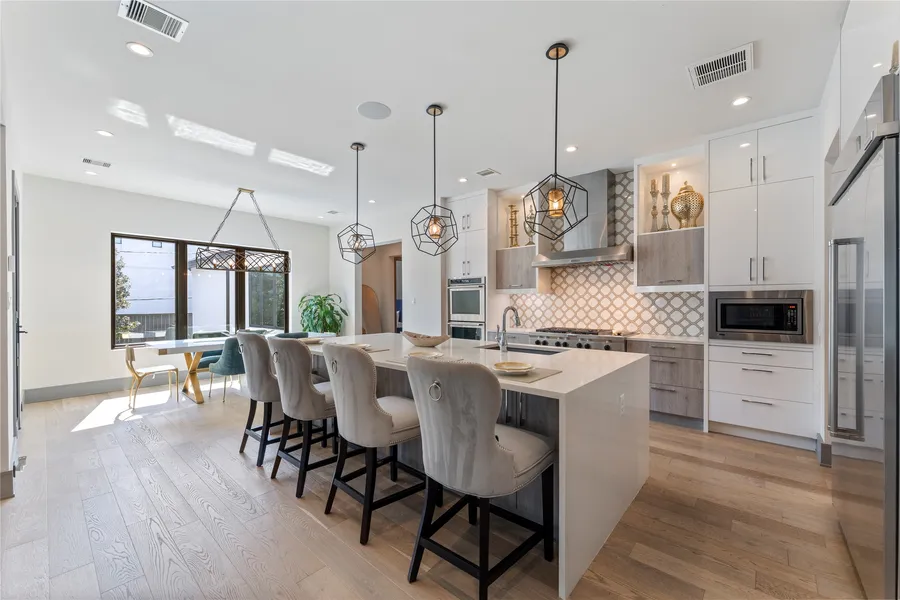 Situated on a picturesque, tree-lined street & set on an oversized lot, this stunning residence feels barely lived in. The home features 5 beds/5.5 baths, with every bedroom featuring an ensuite bath. Zoned to top rated schools including Kolter Elementary! The open-concept layout offers an abundance of natural light. Interior highlights include a grand double-door entry, designer finishes, upgraded lighting, premium flooring & a fully upgraded kitchen designed to impress. The primary suite showcases a spa-inspired bath & an expansive custom closet with DUAL quartz islands, 3 Lazy Susan shoe storage units, soft-close drawers & designer pendant lighting. Resort-style backyard with Gem Magnolia trees offering privacy, a heated pool & spa with tranquil water feature, fire pits and a covered patio with a fully equipped outdoor kitchen. A large game/media room perfect for entertaining. A garage w/ car lift provides 3-car parking and EV charging. Contact The Sawal Group for a private tour.