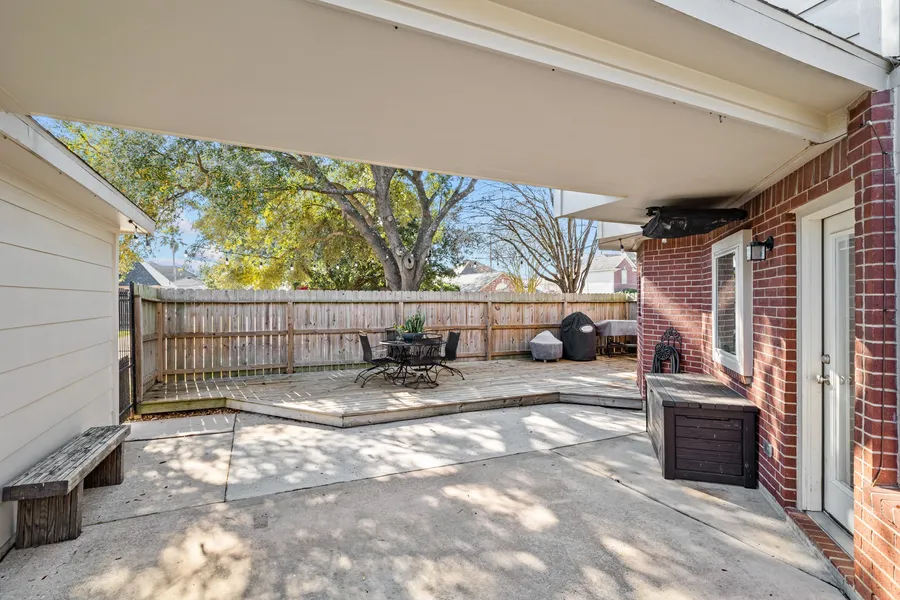Gorgeous 4-bedroom, 2.5-bath home on a large corner cul-de-sac lot in desirable Devonshire Woods. Step into a grand two-story entry leading to elegant formal living and dining spaces—perfect for gatherings. The first floor features engineered hardwood floors and a spacious family room with a cozy fireplace and custom built-ins. The modern kitchen impresses with granite countertops, a large island, stainless steel appliances, 42-inch cabinets, and soft-close drawers & cabinets. Recent upgrades per Seller: all new windows (2023), new water heater (2024), and Hardiplank siding (2023). Updated primary suite offers dual sinks, soaking tub, separate shower, and two closets. Secondary bedrooms feature walk-ins, plus one with a Murphy Bed! Enjoy the backyard oasis with mosquito system, covered sandbox, raised garden beds, and playscape. And a large raised deck that is perfect for entertaining and BBQs. Love the outside party lights. Minutes to The Woodlands, Exxon Campus, shopping, and dining!