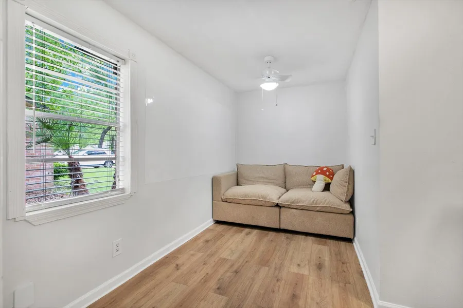 No flood zone, never flooded. Zoned to top rated Kingwood schools (Elm Grove Elementary is inside the neighborhood). Amenities include a pool and club house, pickle ball court, parks, and direct access to Greenbelt Trails. For last minute grocery runs, Kroger is less than a mile away. Inside, the brand-new AC system (2023) is ready to keep you cool during all 7 months of Texas summer. The living room features fresh vinyl flooring (2024) and vaulted ceilings to keep things bright and airy. Not included in the square footage is an entryway mudroom, and just off the living room is a private office/study, which can easily be converted back into garage space. Primary bedroom features laminate flooring, new ceiling fan, walk in closet, and ensuite bathroom. Backyard has plenty of open space to enjoy, plus a shed with running electricity. Schedule your tour today!