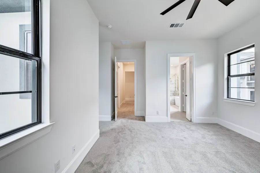 Lock & leave luxury in this beautifully designed, gated community home! The open-concept first floor is perfect for entertaining, featuring an oversized family room with a wall of windows, stylish finishes, and a chef-worthy kitchen with stainless steel appliances, convection oven, pendant lighting, and an oversized island. Off the kitchen is a flex space w/ en-suite bath, offering the perfect guest bedroom, home office, or home gym area. Upstairs, 3 additional bedrooms offer privacy, including a spacious primary suite with abundant natural light, double vanity, designer tub, and frameless glass shower. In addition to the loft area and laundry room, you will find two secondary bedrooms, and a full bath on the second floor. Completing the home is a large backyard area, offering the perfect place for the dog to run or kids to play! Centrally located in a gated community, this home is a must-see!