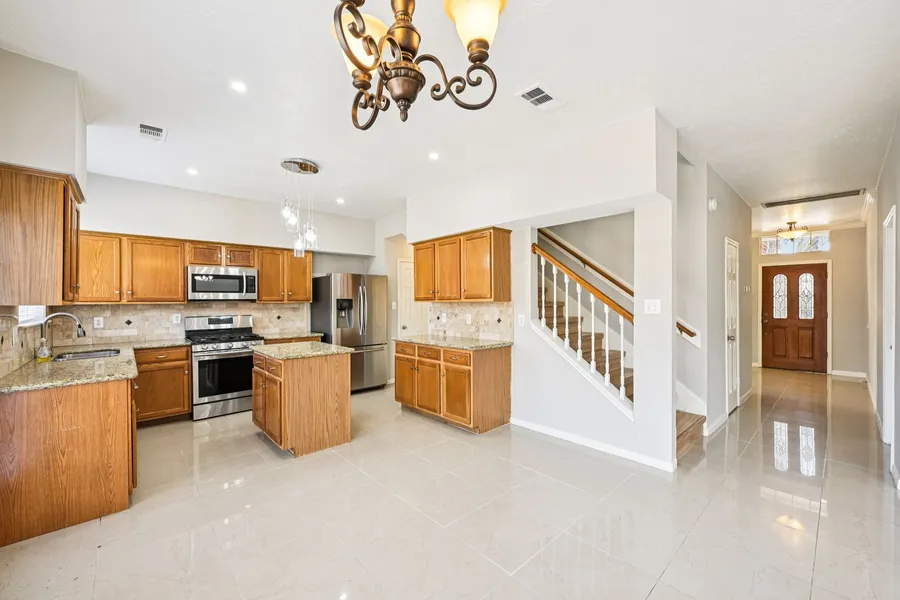 READY TO MOVE-IN! Located on a quiet street with an open, flowing floorplan and marble tile floors throughout the main areas. Features include two-inch blinds, two-tone paint, and crown molding. Spacious living room with cozy fireplace opens to the island kitchen with granite counters, tile backsplash, new light fixtures, undermount sink, stainless steel appliances, and breakfast area. Loft-style gameroom upstairs. Primary suite with attached study (or optional bedroom) and recently updated ensuite featuring frameless shower, jetted tub, and double vanities. Generous backyard with plenty of green space. Zoned to A-rated schools. Close to walking trails, minutes to I-10 and Westpark Tollway, and walking distance to the community pool. Schedule your showing today!