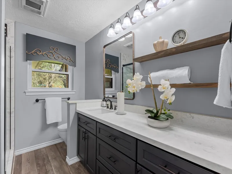 Set on 3.3 private, unrestricted acres behind an electric gated entry, 23027 Lutheran Church Rd offers fully renovated luxury with room to live freely. The 3,544 sqft single story main home features all new flooring, neutral paint, and a redesigned kitchen with solid wood custom cabinetry and built-in Café appliances. Every bathroom has been remodeled with high end finishes, while the primary suite delivers a spa-like experience with an oversized walk-in shower, rain head, hammered copper soaking tub, and custom granite sinks. The 850 sqft guest house includes a full kitchen, bath, and laundry. The property is built for both lifestyle and function with a barn, cross-fenced pastures, upgraded pool with baja shelf, 20x30 pavilion with outdoor kitchen and fireplace, covered RV storage, new water well, updated electrical panels, and water softener system. Zones Tomball ISD, this estate blend...