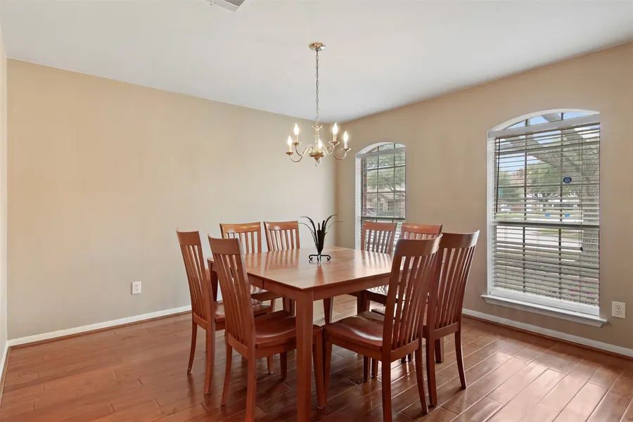 This beautifully maintained one-story, three-bedroom, two-bathroom, two-car garage Ryland Home sits on a desirable corner lot in Bridgestone Ranch & is ready to welcome you home! Roof & HVAC replaced in 2024! The spacious, thoughtfully designed open floor plan is perfect for both everyday living & entertaining. Rich hardwood flooring flows through the dining room, living room, primary bedroom, & primary closet, while attractive laminate wood flooring enhances the secondary bedrooms. Kitchen is well-appointed with a gas stove/oven, microwave, dishwasher, & a center island, with a bright breakfast area just steps away—ideal for casual dining and gathering with friends & family. Living room opens to a generous covered deck, creating & perfect space for entertaining or simply relaxing at the end of the day. Enjoy all that the Bridgestone Ranch community has to offer, including a pool, tennis courts, playground, & additional amenities just moments from your doorstep.