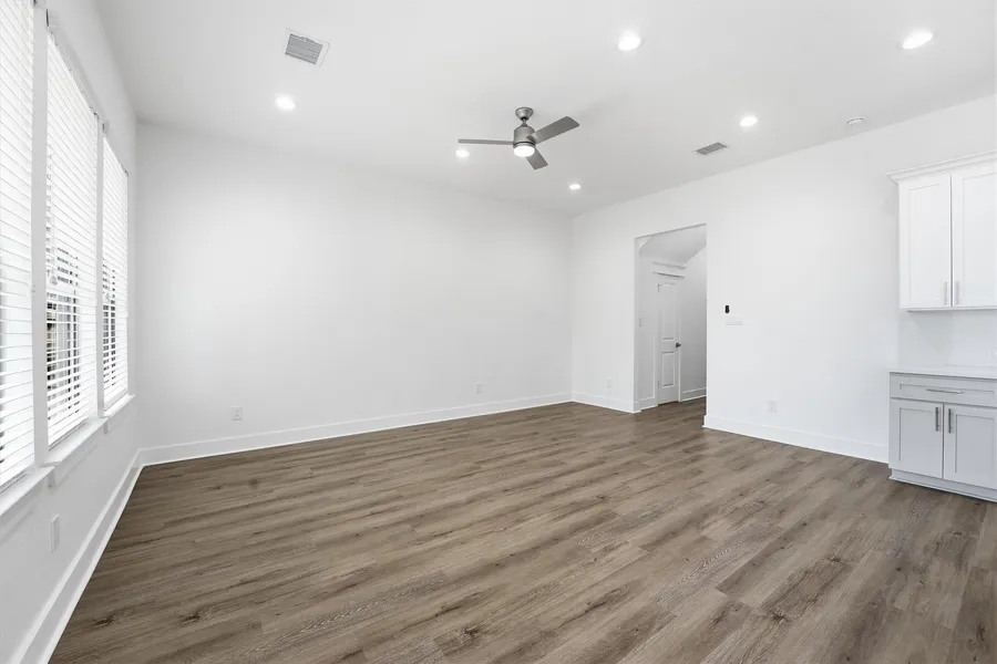 The second floor includes a versatile flex space ideal for a home office, along with all bedrooms. The spacious primary suite features a soaking tub, walk-in shower, dual sinks, and a custom walk-in closet. A spacious upstairs utility room provides added convenience. The backyard offers a patio and wraparound yard space, perfect for outdoor enjoyment. Conveniently located with easy access to Highways 610 and 290 and approximately 12 minutes from the Inner Loop!