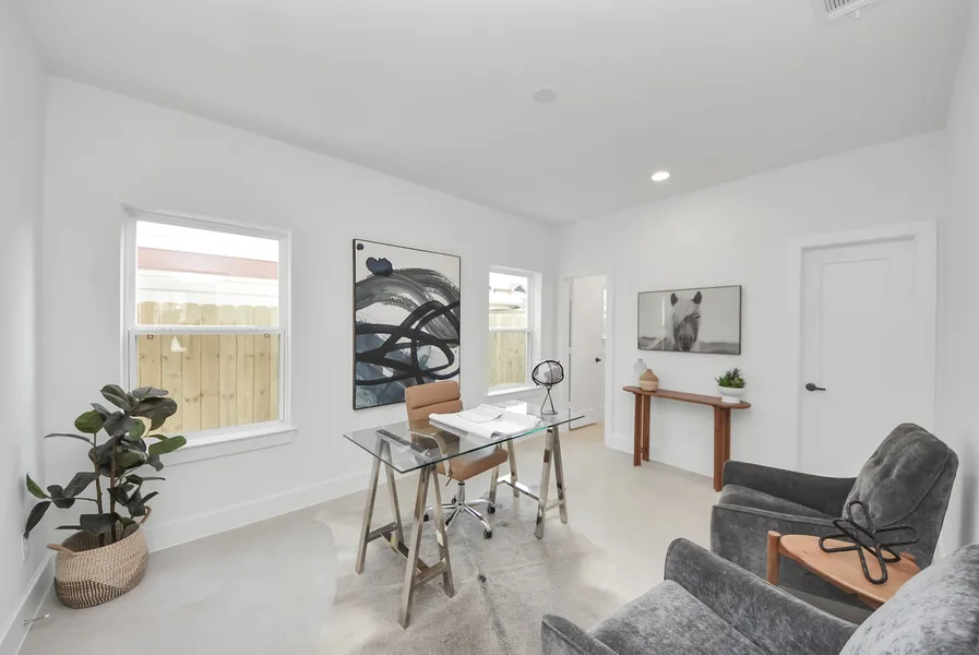 Experience modern luxury at Fisher Court, a brand-new exclusive 23 home community in the heart of Oak Forest. This never-lived-in home showcases exquisite craftsmanship with engineered white oak floors, soaring ceilings, and an abundance of natural light. The designer kitchen features custom cabinetry, a waterfall-edge quartz island, matte gold hardware, and a pot filler above the gas range. Thoughtfully designed for entertaining and everyday living, the open-concept layout flows seamlessly into the dining and living areas. Enjoy the perfect blend of sophistication and convenience—just moments from Oak Forest’s arts district, premier dining, and vibrant nightlife. Schedule your private your today!