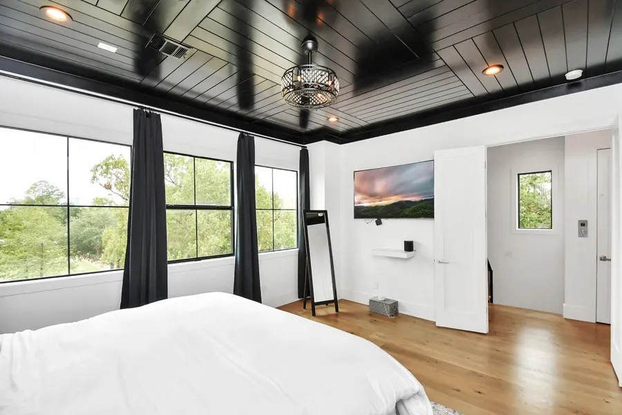 Experience exceptional luxury living in the heart of Montrose with the beautiful 4BR, 4.5FB home situated on a corner lot. The home features designer finishes with an upstairs bonus room, ELEVATOR, and ROOFTOP DECK offering breathtaking, unobstructed views of the city and downtown skyline. All bedrooms have en-suite bathrooms. Paneled accent walls and paneled ceilings all over the home. 1st floor bedroom can be used as an office with it's own bathroom. The 2nd floor showcases the open floorplan with abundant natural light in the kitchen, living, and dining rooms. The chef's gourmet kitchen features stainless steel appliances with a potfiller, custom cabinetry, wine fridge, and a large kitchen island perfect for entertaining. The primary bathroom features a large walk-in closet, standing shower, and separate jetted tub. 4th floor features a huge bedroom that can be used as media or game r...