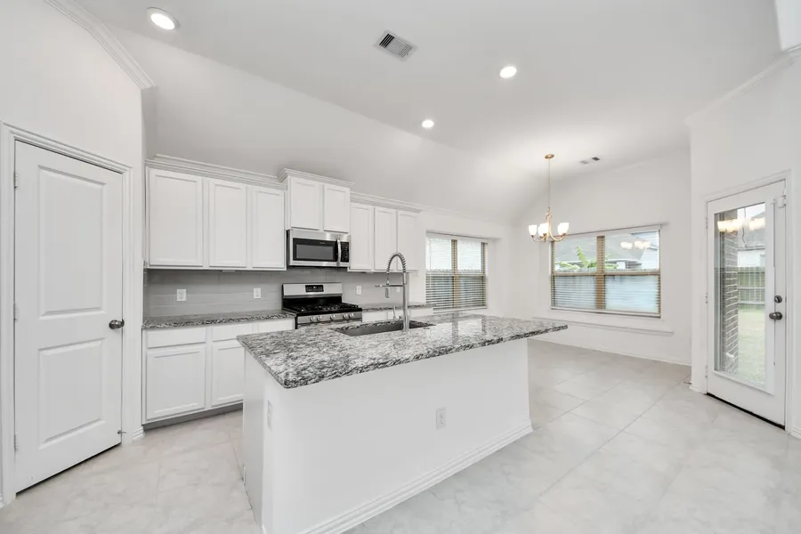 Welcome to this beautifully maintained next-generation home offering flexible family living! This home boasts a spacious living room with soaring ceilings and a cozy corner fireplace. The modern kitchen features an island with bar seating and flows seamlessly into the dining and living areas, perfect for entertaining. A next-gen suite with a kitchenette on the first floor adds versatility, while the primary bedroom offers an en-suite bath with dual sinks, a soaking tub, a walk-in shower, and a large walk-in closet. An additional first-floor bedroom and full bath provides convenience and comfort. Upstairs, enjoy a loft space and an additional bedroom and full bathroom, offering ample space for various needs. The fully fenced backyard features a covered patio and plenty of green space for outdoor enjoyment. This home is close to local shopping, dining, parks, easy access to major roadways,...