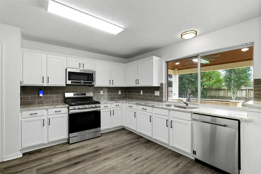 Beautiful 4-bedroom, 2.5-bath home in sought-after Fawnlake! Prime location across from Mary Jo Peckham Park with pool and fitness center, and walking distance to the popular Train Park. This home features fresh new paint throughout, a bright open-concept layout with granite countertops, spacious kitchen, and flexible living/dining areas. The primary suite offers a private retreat, while the backyard oasis includes a large patio and outdoor kitchen—perfect for entertaining. Additional perks include a whole-home generator, water softener, and access to free City of Katy pool and gym memberships. No MUD tax, low tax rate, and zoned to top-rated Katy ISD schools!