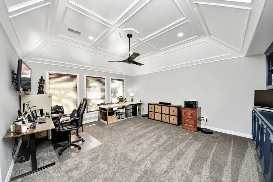 The first floor features a spacious primary suite with dual vanities and two large walk-in closets. Additional highlights downstairs include two gas fireplaces, a formal dining room, a breakfast room, a cozy den, and an updated kitchen with granite countertops and appliances. Upstairs, you’ll find a private study, a large game room with custom built-i...