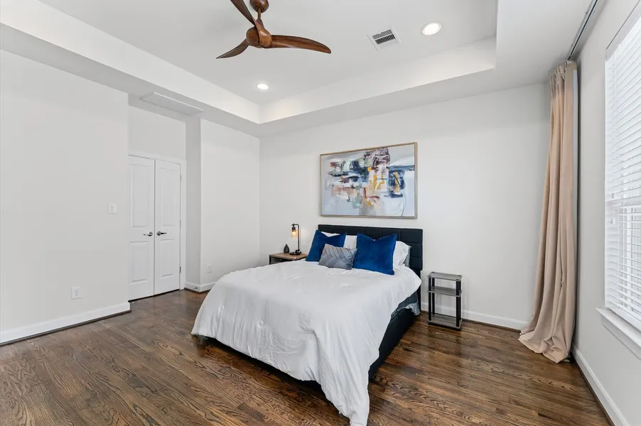 Discover elevated living in Shady Acres Gardens! The gated community in The Heights offers this multi-level home with an impeccable design. The 2nd-floor open layout invites everyday living, while providing the perfect backdrop for entertaining guests. A stylish island kitchen features under-cabinet lighting, a walk-in pantry, a built-in wine fridge, and balcony access. The 1st floor showcases a bedroom and bath, perfect for a guest or roommate. Head to the 3rd floor, and discover a spacious primary suite. Natural light fills a spa-like bath with a rain-head shower and a separate soaking tub, as well as a generous walk-in closet with custom built-ins! The 3rd-floor split layout includes a third bedroom and a full bath, ideal for a family member or guest. Ready to relax and unwind? Just pop up to the rooftop deck for a quiet evening outdoors or a visit with friends. Shady Acres Gardens of...