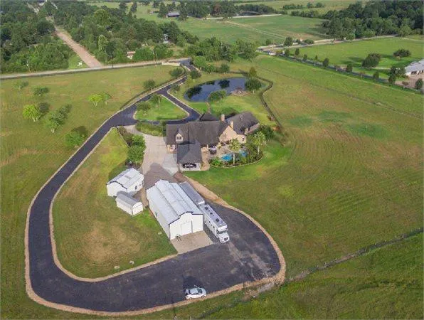 Long private gated drive leads up to this amazing one of a kind property with custom home, pond with dock, outdoor entertainment complex & two large metal shops on almost 10 acres. Home features updated flooring, plantation shutters & great open plan with fireplaces in the family room, master bedroom & outdoor living area. Stunning office & gameroom overlooking pool. 715 sf garage apartment NOT included in sq footage. All appliances in indoor & outdoor kitchens 2 yrs old. All bedrooms with private baths & built ins