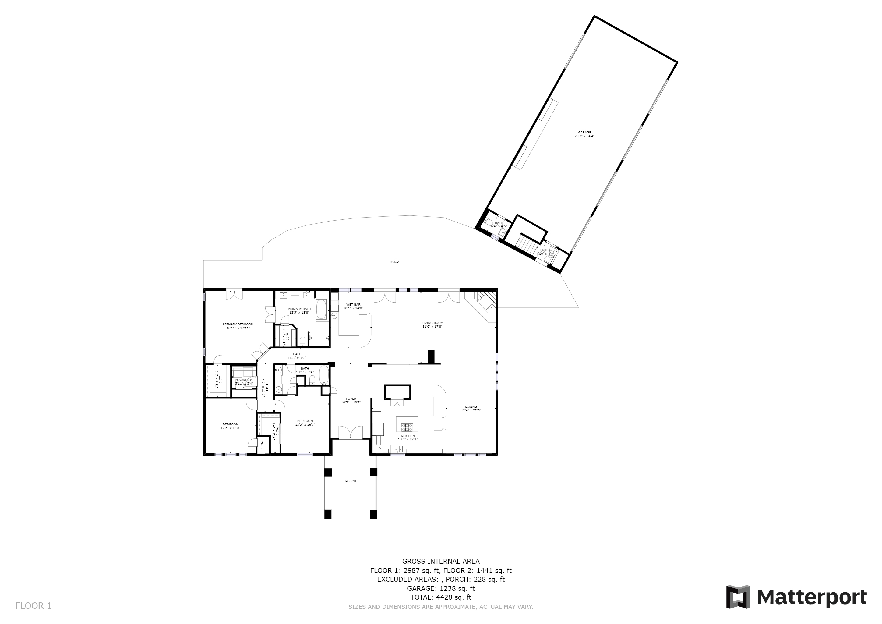 This expansive and secluded 4.86-acre compound includes an updated 3,072SF main residence and a 5,000SF barn/garage -once used to work on custom cars equipped with a full-auto shop, room for 10 vehicles or flexible space for horses and livestock plus a tractor-trailer, guest apartment, and an amazing entertainment lounge with full bar. In the 3BD/2.5BA residence, enjoy a large open plan living and dining alongside a fireplace and walk-up bar. The open kitchen features great storage and counter space. Enjoy two secondary suites plus an owner's suite with two walk-in closets & spa bathroom. Above the home's four-car garage, a 1,600SF home office/studio/apartment features a kitchenette & bath. Outside, covered patio welcomes outdoor entertaining. The sprawling property greets you with a double-gated circular drive, lush lawns, and mature trees. The grounds also offers a large lake for swimm...
