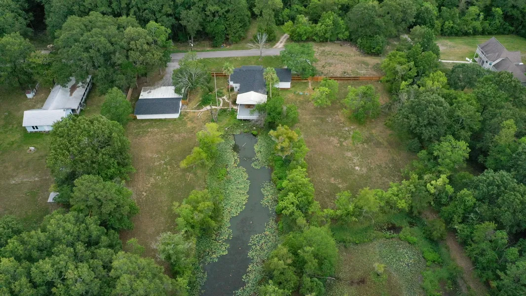 Throw your fishing rod from the comfort of your back deck into the private lake while living in this Unique property on 2.7 UNRESTRICTED acres that has a 6+ FT WOOD FENCE ALL AROUND THE PROPERTY. Home was taken down to the studs, elevated from it's previous elevation and remodeled with the tastiest of finishes. Home features 2 primary suites with double vanities, with all bathroom vanities throughout the house boasting BRIZO faucets, SIGNATURE HARDWARE Shower faucets, light fixtures from upscale brands like Kichler and Progress lighting. All new electrical wiring, plumbing, roof, hardie siding, 5 ton Carrier HVAC, water heater, energy efficient double pane windows, Luxury Vinyl plank floors, Porcelain and Quartz kitchen counters and backsplash, shaker cabinetry, stainless steel appliances package, ship lap accent walls in all bathrooms and more. Inquire about list of upgrades. 2 car garage plus huge man cave that can be converted to an apartment. 6 car driveway + RV parking.