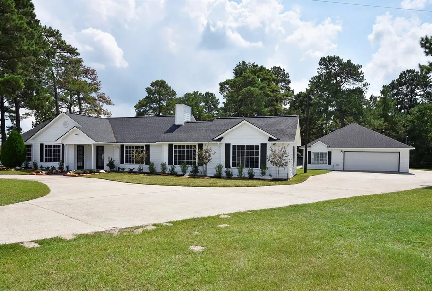 “Home on the Range” but you do not have to drive for hours to get there. Here, on the edge of and within the City limits of Tomball but insulated with pastures and trees 8.0744 acres of beautiful land, AG Exempt for low taxes and competing with some of the most beautiful vistas across Texas. Fenced and cross-fenced for horses or cattle. Stocked pond where cows and wild birds are frequent visitors. Comfortable ranch home has open design, high ceilings, windows viewing out to all sides of property, 2 living areas & enjoy outdoor living on large patio w/cathedral ceiling and a floating gazebo deck on the pond. Approx 600 SF 1-BR,1-Bath Guest House. Oversized garage & extra 24X24 covered space perfect for equipment storage. Plenty of extra parking areas. Recent extensive revitalization includes replaced all roofs, insulation, flooring, some cabinets, appliances, crown molding, window casings, repaired or replaced AC units, well pump, painted in & out, replaced fences, updated landscaping.