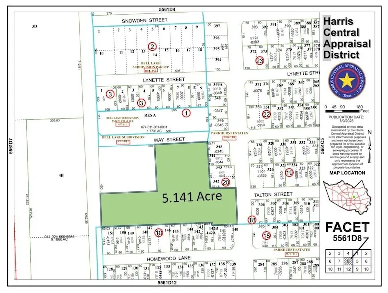 Lot is 5.14 acres for sale cleared with access from 3 surrounding streets.