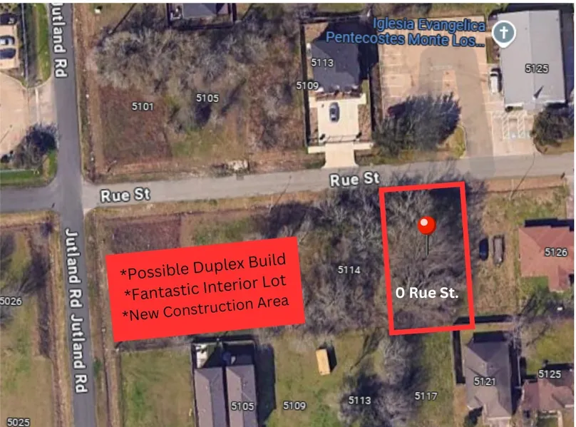 Seize this prime 5,500 sq ft lot in Bayou Estates, a rapidly growing neighborhood near the Houston Medical Center. Conveniently located less than 15 miles from Downtown Houston and 5 miles from the University of Houston, it provides excellent connectivity. Surrounded by new construction, including multifamily homes and duplexes, this development-ready property at 0 Rue St. offers high visibility, design flexibility, and a seamless build process with a complete survey and compliance with new livable ordinance standards. Just a block from the Sims Bayou Hike & Bike Trail with easy access to major roadways, it combines lifestyle appeal with strong investment potential. An agent-connected builder active in the area is available to discuss building and architect resources. Whether you plan to build and rent, sell for profit, or live in one unit while leasing the other, this lot is a prime opportunity. Don’t miss out on bringing your vision to life in this thriving community!