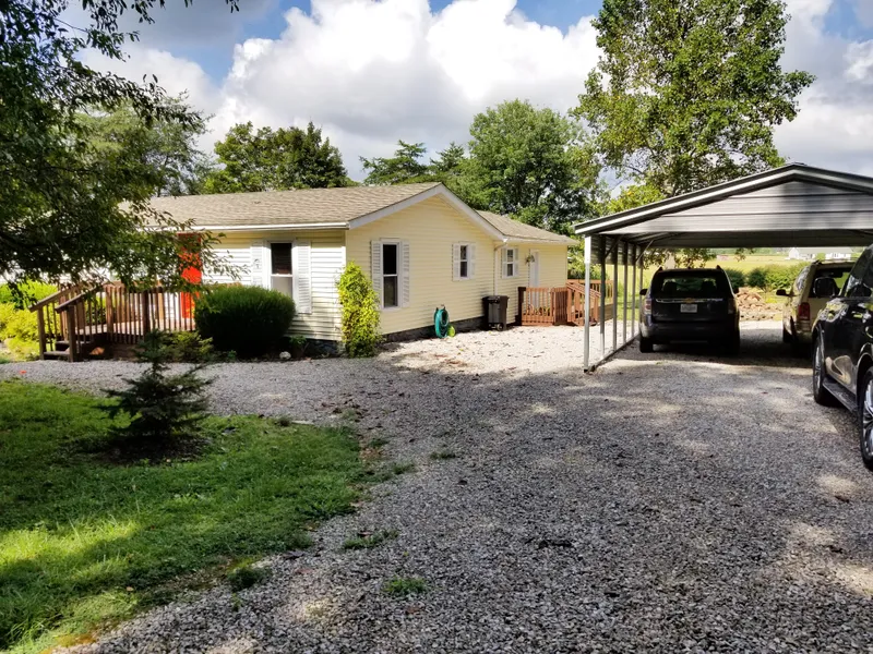 What a cutie! Can't help but fall in love at first sight in this tranquil setting with its panoramic views of the farm land from the private backyard. Dead end road too so very little traffic. Furnace and AC just about 2 years old. Split bedrooms and baths. Family room in the back has french doors leading the deck outside. Two large storage rooms could easily become 2 more bedrooms. House is manufactured at front and stick built at back. The hobby shed could be mancave or she shed. Located just south of Lanesville makes for easy commute to Louisville. Don't let this one get away.!