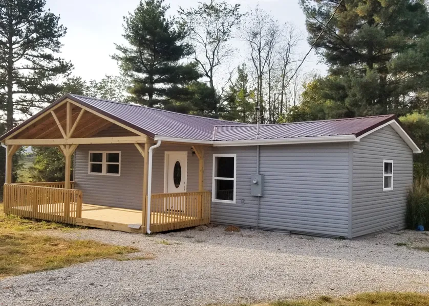 Footprint's the same but that's where it stops and new construction begins. This one needs nothing but the front door key! Open living room, dining area and kitchen. The open front porch begs for a couple rockers and you! 3 bedrooms 2 baths, new, new, new. Come look today. Great for going south toward Brandenburg or north to Corydon.