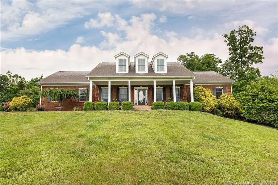 What a beautiful setting! This custom blt home sits on 5 acres buffered by trees on 3 sides. The pretty kitchen has cherry stained cabinets w/ granite and stainless appliances (brand range & M-wv new). Split bdrs, formal dining room, formal living room (perfect for home office) and spacious family room which looks out onto the INGROUND POOL & patio area. Downstairs you'll find a huge fam room, full kitchen, big bathroom & tons of "flex space" to use however you imagine (game room, family room, craft/exercise, bedrooms etc). Two rooms that could serve as add'l bedrooms have no window egress. In the game room area, the pool table stays. The outdoor spaces will delight! Pool w/ slide, patio surrounding it and it's fenced for safety. New pool liner in 2016, pool pump 2020. The HVAC system with dehumidifier is about 2y old. QUALITY CONSTRUCTION: 2x6 exterior walls, PELLA windows & I-joist construction. *The price reflects the need for some fresh paint and carpet. Check out this BIG DETACHED GARAGE! It's huge with loft area for storage. Plus, it's wired, insulated, has an office area & bathroom! This home sits about 6 miles off the Lanesville exit, halfway between Lanesville and Corydon. Seller provides a 1yr home???????????????????????? warranty.