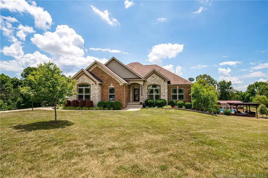 **Multiple Offers Received, All offers are to be in by 10 AM Thursday, July 1st, response time will be 8 PM July 1st.** Custom one owner home in PRISTINE CONDITION. Quality and taste meet country setting with convenient location. Geothermal HVAC, "Duration Home" interior paint by Sherwin Williams, whole house audio system w/blue tooth. Tall ceiling with decorative beams in living room. This gorgeous kitchen is totally customized and it's dreamy! Quartz counter, Koehler cast iron deep bowl sink, huge island, double ovens, built-in pantry w/ pullout shelving & reverse osmosis 6-stage drinking water is ran to the kit sink & fridge. The Owner's suite is quite large & elegant. Split bedrooms, custom blinds, solid surface flooring (not a stitch of carpet anywhere in this house!), covered back deck/patio plus finished full back walkout basement. Wetbar in lower level has dishwasher & mini-fridge. Gorgeous fireplace in the spacious family room, large 4th br/ 3rd full bath. All the finished area in basement has wood look tile floor. Enjoy the outdoor spaces: lighted landscape, firepit and 18x33 above ground pool (solar heated). Large pole barn is 24x40 w/ 16x40 leanto. It's wired (60amp) and heated by a wood pellet stove. All of this luxury on 5+ acres! This home has Mainstream fiber optic internet.