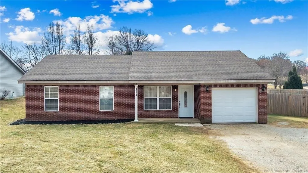 Welcome home to this beautifully maintained 3-bedroom, 2-bath ranch in Palmyra, Indiana. Designed for easy living, this home offers the convenience of no steps along with extra-wide doorways and hallways, providing comfortable accessibility throughout. The open layout creates a natural flow between the living, dining, and kitchen areas-ideal for both everyday living and entertaining. Step outside to enjoy the fully fenced backyard, perfect for pets, play, or gatherings. The covered porch offers a relaxing space to unwind in the evenings after a long day. Garden enthusiasts will appreciate the existing raised garden beds, ready for the next owner to begin planting this spring. Located in a quiet, established neighborhood, this move-in ready home blends comfort, practicality, and outdoor enjoyment in one inviting package. Sq ft & rm sz approx.