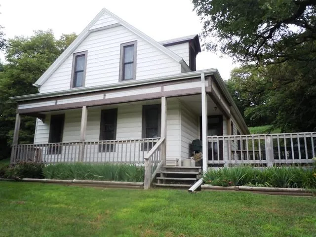 Edge of town acreage on 3.93 acres for sale. This 1 1/2 story home located on South edge of Logan, Harrison County, Iowa, has 1 bedroom on the main and 4 upstairs (2 non-conforming). Eat in kitchen, Dining & Living rooms, Den and full bath and laundry on main level. Partial useable basement. This acreage has a 2 car detached garage which is heated and Air conditioned with a bathroom. Also has two smaller outbuildings. Park like setting with mature Oak trees.