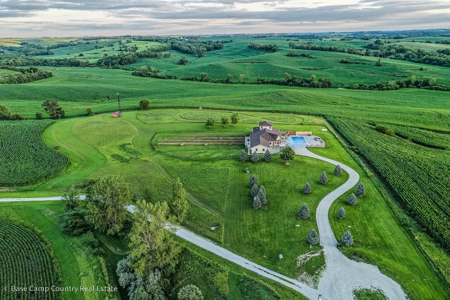 The home sits on five surveyed acres atop a quiet cul-de-sac, delivering sunrise-to-sunset Loess?Hills views from two composite decks and an in-ground pool with diving board. Major updates include a new shingled roof (2024) and replaced heating system (2022). Water is supplied by a private well; the septic system will have a Time-of-Transfer inspection on file before closing. A 10?kW wind-turbine tower remains on site; the turbine head was storm-damaged and conveys as-is.