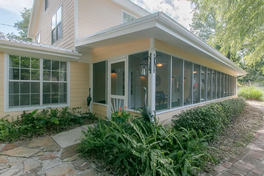 Private park like setting on 1.3 acres with dozen of BEAUTIFUL mature oaks throughout the property. Welcoming screened patio that wraps around half the home overlooking the gorgeous property. SPACIOUS living area that is opened to the GOURMET kitchen with tons of cabinets and countertops. Three french doors overlooking screened patio. Large master suite, with separate vanities, & walk in closet. This home has been updated with an effective age of 15 years. Amazing attic access by stairs with TONS of storage. Property is not in a flood zone!