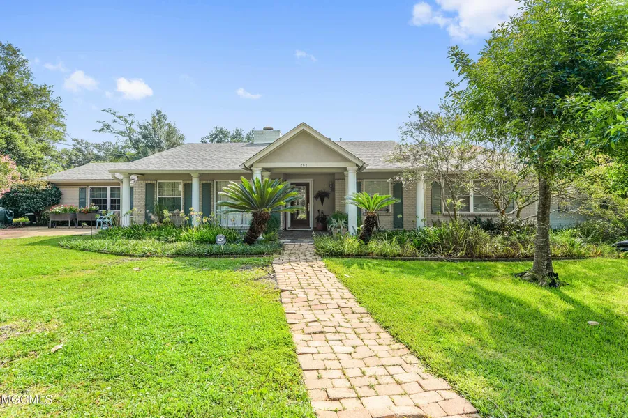 Beautiful Southern Charmer * Brick and Stucco * Savor a view of the Gulf from the backyard * Walking distance to the Beach * Living room w Fireplace * Separate Den/Family rm * Italian limestone flooring * Crown Molding throughout * Top of the Line Dream Kitchen w Wood-Mode cabinetry * Granite countertops * 1000 sq.ft. Master Suite and Bath, KITCHEN AND MASTER SUITE remodeled by INSIDE OUTSIDE * Stained glass window * Walk-in Closets * Master Bathroom has Brookhaven cabinetry, stone shower w two shower heads, private commode area, double vanity sliding drawers for clothes * huge island with drawers for clothing * Heat slate floors in Master Bath * Huge walk-in shower * Jacuzzi Whirlpool * Large Rear Patio PLEASE WEAR MASKS FOR ALL SHOWINGS.