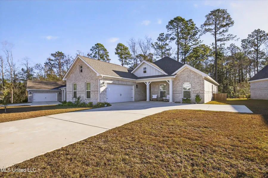 Welcome home to 11106 Alphabet Road, where comfort, style, and coastal charm come together in the heart of Florence Gardens. From the moment you arrive, the welcoming covered front porch sets the tone and offers the perfect place to relax while taking in peaceful Mississippi Coast sunsets after a long day. Step inside to a bright, spacious foyer that opens into a thoughtfully designed, single-level layout. Luxury vinyl plank flooring flows throughout the home, creating a warm and cohesive feel while offering everyday durability. The open great room connects seamlessly to the eat-in kitchen, making it an ideal space for gathering and entertaining. The kitchen is both functional and inviting, featuring quartz countertops, soft-close cabinetry, a separate pantry, and stainless steel GE appliances, including the refrigerator, all with plenty of room to move and work comfortably. Just off the great room, the covered back patio provides a cozy outdoor retreat, perfect for relaxing, hosting guests, or enjoying all-weather seating year-round. The owner's suite offers a private escape with a spacious walk-in closet and a beautifully designed bathroom featuring a double vanity, soaking tub, and a separate tiled shower. This home is smart-wired and energy-efficient, offering modern convenience and peace of mind. Located in the desirable Florence Gardens community, you'll enjoy a welcoming neighborhood known for its charm, thoughtful design, and pride of ownership. This is a home that truly invites you to slow down, settle in, and enjoy the lifestyle it offers.