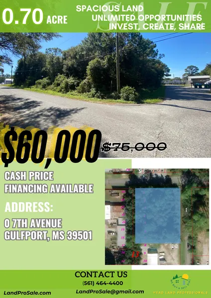 With its strategic location in Harrison County, just minutes from the beach and local attractions, this property is a solid investment for anyone looking to make a mark in the Gulfport area. Don't miss out on the chance to shape this prime parcel into your next successful venture. Feel free to call or text Head Land Professionals, or e-mail at your convenience.