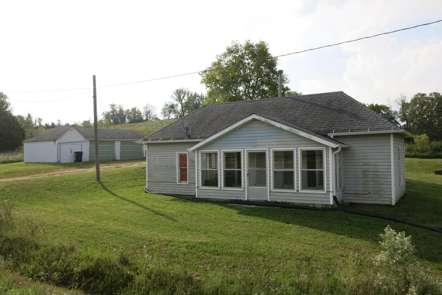 This 1556 sq. ft. home is located just inside of New Hampton Missouri city limits. The home consist of a 17x10 kitchen, 16x16 dining room, 15x15 living room, 8x9 bath, and 3 bedrooms that measure 15x16, 10x11, and 10x19. It also has a 7x10 utility room and a 10x5 back porch/mudroom. Present owners have done a lot of work to this home, however there is more to be done. Although further improvements are needed the home is livable right now. The home has a 24x34 two bay garage and a third bay for extra storage. Even though this home is in the city limits it comes with 10 acres that has pasture, a creek, and two bottom ground fields that are in grass right now but could easily be farmed.