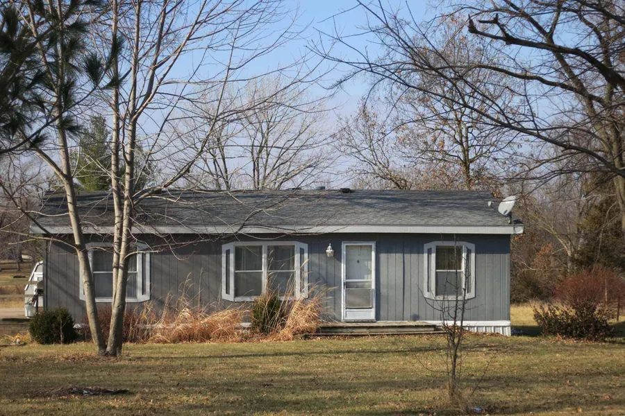 This 5 acre parcel is located on the edge of a small rural town in Northwest Missouri. It has nice shade trees around the house and the balance of the property is grass. It has been hayed the past several years, but could easily be fenced for livestock. There is a newly built 20x22 two car garage, and a smaller 8x12 shed. The home is ranch style manufactured home with 1120 sq. ft. of living space. It has three bedrooms measuring 15x13, 12x10, and 10x10. There are 2 full bathrooms that are 9x9, and 9x5. The eat-in kitchen is 15x15, and is open into the 15x18 living room. It also has a utility/back porch entry that is 7x10 with washer and dryer hookups. The home has a front 10x6 wood deck, and a 9x14 back door wood deck. This home has good curb appeal and a country feel to it with it being on the edge of town. Reasonably priced.