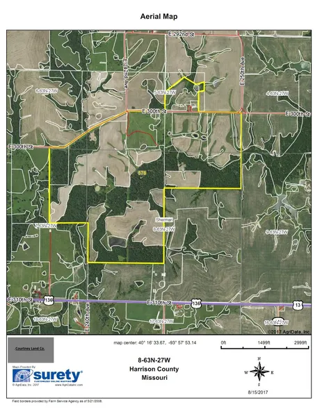 This 578 acre m/l property located 3 miles east of Bethany, MO, is a hunters paradise with some great income opportunities! Currently this property has 200 acres m/l in production with annual income for 2017 at $33,000. It has another 180 acres m/l that could be put in production. With some clean-up, another 72 acres m/l could be put in production, for total tillable acreage potentially being approximately 452. The property has a beautiful 4 bedroom, 3 bathroom home, nice upstairs family room with many recent upgrades. There is new flooring throughout the entire main level consisting of hardwood and carpet. The kitchen and laundry room areas have been updated with new, custom-made cherry cabinets! Adjacent to the house is 48x80 metal building, with a 30x48 shop. The shop is heated and includes an office, built-in gun safe, full bathroom with washer and dryer hookups, and a Hardy ...