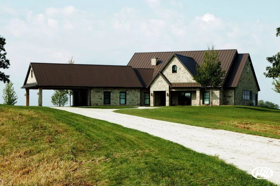 - Ruggedly handsome exterior with metal roof and limestone clad walls