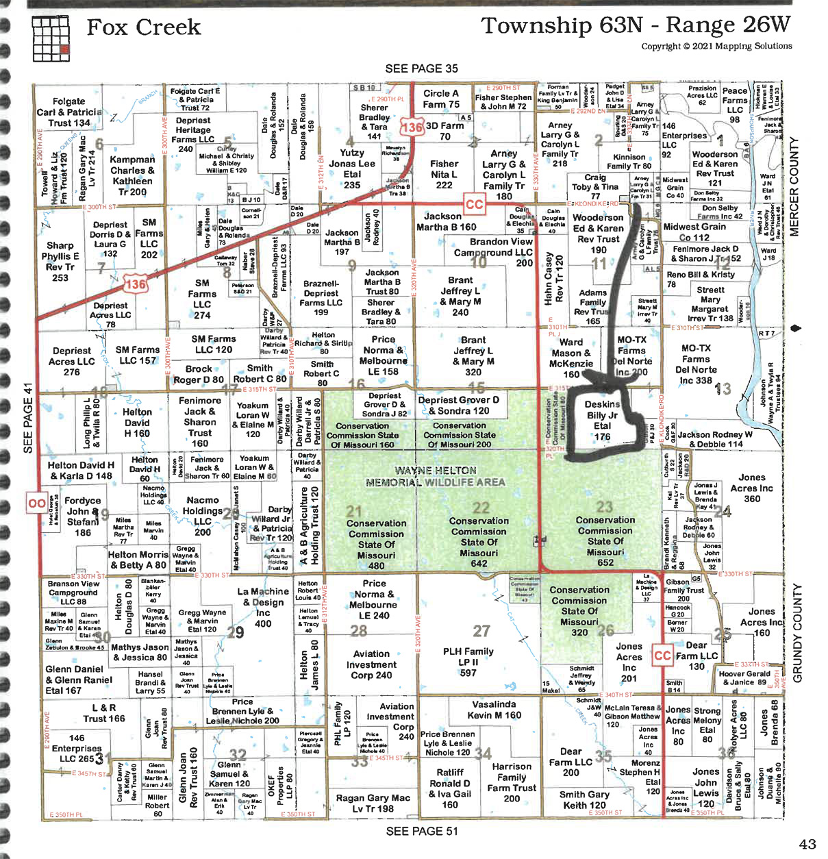 This 176-acre m/l recreational paradise borders the Wayne Helton Memorial Wildlife Area consisting of 2560 acres that funnels directly onto this property. I walked this property and it is big buck haven. Some really thick bedding areas for the bucks leaving the wildlife area. This farm is an empty canvas for a buyer to make their own with the foundation in place that any great rec property needs.