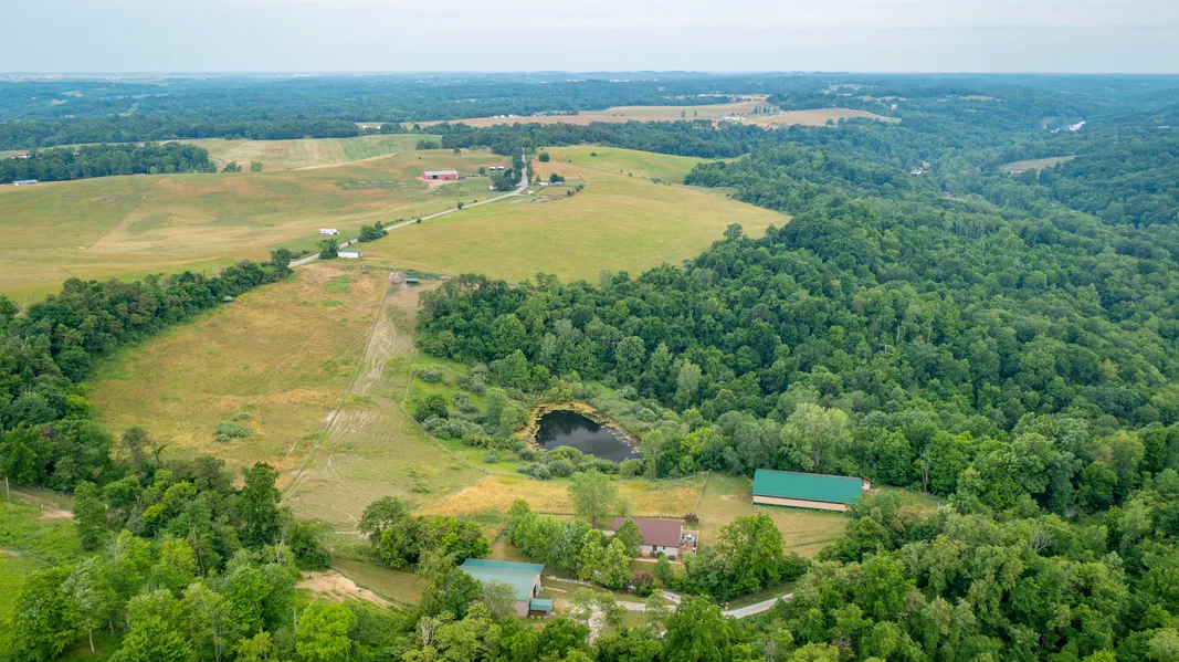 Presenting a two-story gem horse farm with 77+/- acres with pond numerous uses farm/hunting, Home features vaulted ceilings in family room with gas log fireplace large eating area walks out to huge trex deck with sweeping hillside views. Wonderful chef kitchen with gas island top, SS refrigerator and built in wall oven and microwave. Wonderful owners ensuite with whirlpool tub and private country views. Large study, two bedrooms and bath along with nice LVP flooring completes the upstairs. Lower-level features finished rec room, bedroom & full bath & 2-car garage. Home generator stays. Large horse barn with room for numerous stalls and storage area. Big riding arena with 200 amp service Enjoy the serenity of your own private oasis while being close to nature. Home has internet service