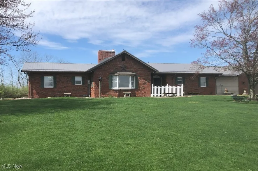High upon a hill on 3.67 Acres just outside Cadiz sat a 3 Bedroom brick ranch quietly, but anxiously, awaiting a new owner. Sound like a fairy tail or a home too good to be true? Come see all this home has to offer with its panoramic views of the village. Large eat in kitchen with ceramic tile flooring and access to rear. Open Living room with new carpet, floor to ceiling brick fireplace, wood burner and stone wall with picture window. Master suite with bath and double closets. Renovated guest bath with new shower insert, shower doors and vanity. First floor laundry with utility tub. Enclosed breezeway to a 2 car garage. Finished LL rec room with bar and full bath. This freshly painted home has a $19,000 brand new metal roof in 2025 and is move in ready! Seller to retain all mineral rights.
