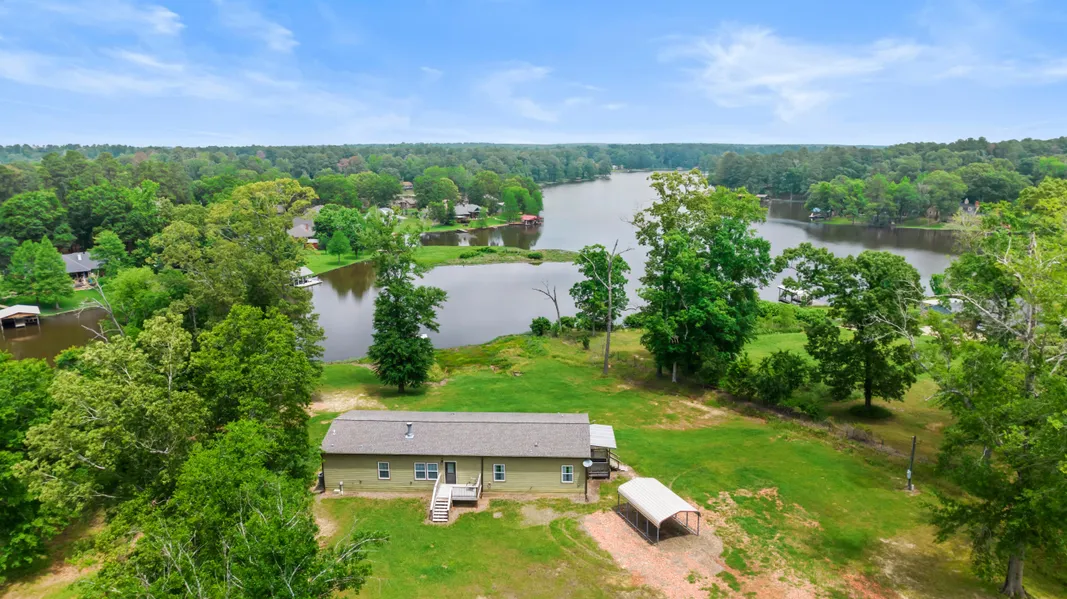 LAKEFRONT 3 BED 3 BATH! Lakefront privacy and seclusion on Lake Shadowood Reservoir, just northeast of Marshall! Enjoy largemouth bass and channel catfish fishing, tubing, and knee and wake boarding from your personal dock, just a quick walk down from your 2280 sq ft home! Nearly 14 acres of gorgeous and serene pasture and woods with trails throughout and 1400 ft of lake frontage, including private sloped dirt ramp, make this property a beautiful gem tucked away between Longview and Shreveport with quick access to Marshall and Tyler! With no land restrictions and no mandatory HOA, this property can be your hunting and recreational paradise with room for livestock--deer and eagles are common! The home here is perfect for entertaining multiple guests with an open floor plan, cozy living room with wood-burning fireplace, bonus family room with a king-sized murphy bed, two guest bedrooms, and two full guest baths. Space galore and extra closets, a flex office or nursery space next to the master, plus a great size laundry room, make this an excellent retreat for you and your family! Youll find bar-top seating in the kitchen, plenty of cabinet and counter space, and a walk-in pantry. Dinner will be with lake views in the dining area or spend your mornings out on the back deck! The split master bedroom also has lakefront views and a spacious master bath with double vanity and a tiled walk-in shower with multiple shower heads. Theres fabulous natural light from a transom window above the shower! With solid oak flooring, cushy carpet in the bedrooms, and tile in the guest baths, youll love the easy maintenance and finishings inside. A cow and horse barn, goat pen, and chicken coop outside means setting up livestock will be easy. With room for gardens, more barns or corrals, and all the bass you could want, this property is a fabulous homestead only 40 miles from Shreveport! Dont miss your chance for peace and quiet on a private lake in East Texas!