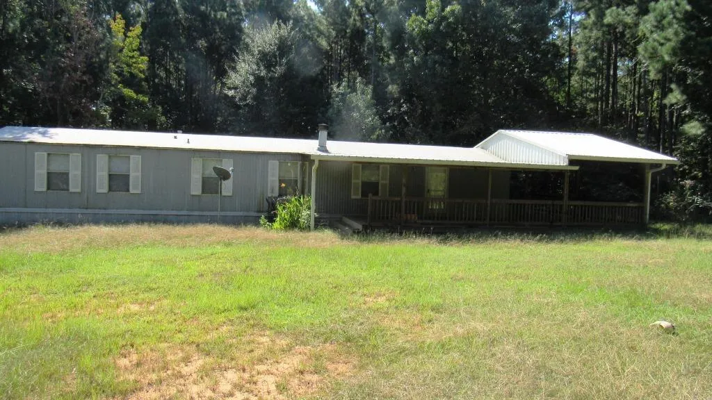 Come take a look at this 2/2 manufactured home on just under 4 acres. This home has a spacious covered deck, stainless kitchen appliances, fenced yard, carport and a storage building. Call to see today! $49,500