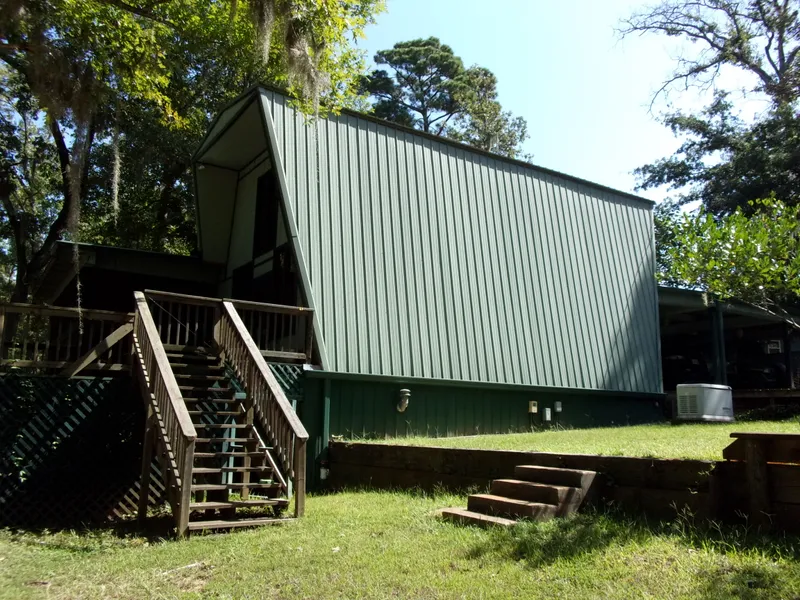 Unique waterfront home at Caddo Lake! This home has been well maintained with a new updateds in Bath and Kitchen. Lots of kitchen cabinets, which have new paint, gas range, new sink, walk-in pantry and a large island with lots of storage. Open living area has vaulted ceilings and large windows that let you enjoy the beauty of Caddo Lake. Home has a large master bedroom with private bath downstairs. Complete with an extra large porcelain soaking tub and shower, new flooring, new paint and fixtures. Master also has sliding glass doors that lead out onto the screened porch to sit and enjoy your morning coffee in the peace and quiet. Decking on front and back is great for entertaining. Home has new gutters & down spouts. Includes a 16x32 Little House with porch and electricity being used as a boutique/workshop. There is a 10x16 barn with double doors and double lofts. Fenced in dog pen. Boat...