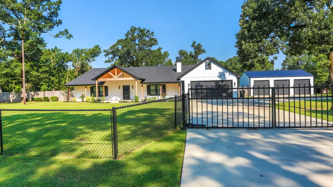 STUNNING, UP TO DATE HOUSE SITTING ON OVER 2 ACRES IN ELYSIAN FIELDS. 4 BEDROOM, 3 BATH CONTAINING TWO MASTER SUITES AND HIGH END FINISHES. QUARTZITE COUNTERTOPS IN THE KITCHEN, AN OVERSIZED BUTLERS PANTRY, NEW FLOORING, PAINT, ROOF, ETC. NOT A KNICK OF THIS HOUSE HAS BEEN LEFT UNTOUCHED OR DATED. OUTSIDE YOU WILL SEE A FENCED IN FRONT AND BACK YARD WITH AN ELECTRIC GATE TO ENTER THE DRIVEWAY, WHICH IS CONTROLLED BY AN APP ON YOUR PHONE, NEW BACK PORCH DECK, AN ABOVE GROUND, 24 FT. ROUND POOL, AND A 3 BAY, 1200 SQUARE FOOT SHOP SITS BESIDE THE HOME. THIS HOUSE LEAVES NO ROOM FOR IMPROVEMENT.